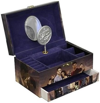 Official Breaking Dawn Part 1 Jewelry box that has the Cullen/Quileute Crest in the middle. Available on Amazon.