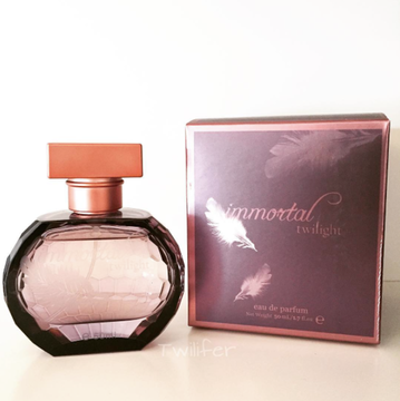Perfume called “Immortal” Twilight with Bella and Edward on the side of the box.
