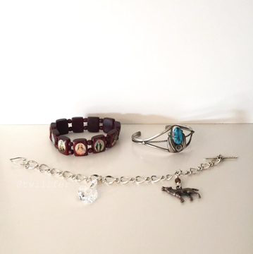 Bella Swan’s jewelry, including her bracelet with Jacobs wooden carving and Edwards heart diamond as charms.