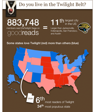 This is more of a Twilight Extra but here is a map of the United States and the states that most read Twilight when it first came out.